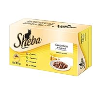 Sheba Selection in Sauce Katzenfutter Saucen-Vielfalt, 32 Schalen (4 x 8 x 85 g)