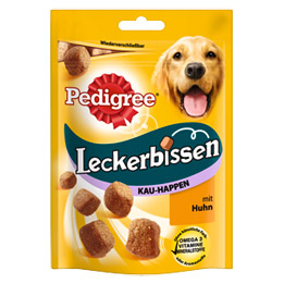 - Beispiel: Pedigree Leckerbissen Kau-Happen Huhn, 6 Beutel (6 x 130 g)