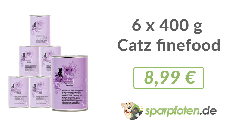 ![[Dehner Onlineshop] Catz finefood Knaller: 30 x 400 g-Dosen für 44,95 € (= 8,99 € für 6 Dosen) catz finefood dehner angebot](https://sparpfoten.de/wp-content/uploads/2018/03/catz-finefood-dehner-angebot.jpg)