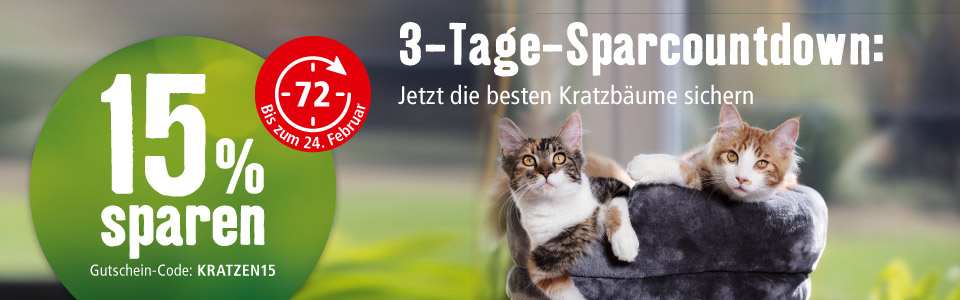 Wer mit dem Gedanken spielt, sich einen neuen Kratzbaum zuzulegen, sollte mal bei Fressnapf.de reinschauen. Ihr bekommt dort noch bis morgen 15% Rabatt auf das komplette Kratzartikel-Sortiment mit dem Gutscheincode KRATZEN15 und nur noch heute bis 23:59 Uhr zusätzlich 15-fache Payback-Punkte (= effektiv 7,5% Rabatt).
